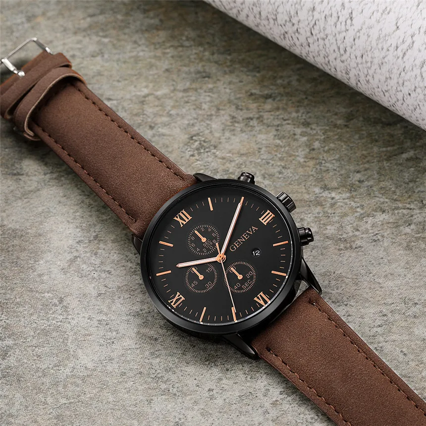 Fashion Geneva Men Date Alloy Case Synthetic Leather Analog Quartz Sport Watch Male Clock Top Brand Luxury Relogio Masculino D30