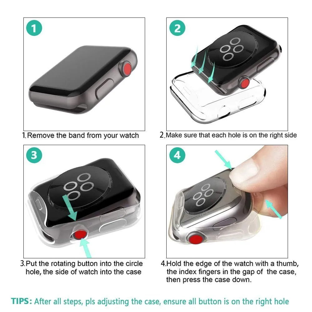 This case with screen protector is designed to offer external surface protection to your apple watch. It's smooth, crystal clear TPU case.It protects the screen and four sides, Scratch-proof, anti-collision.