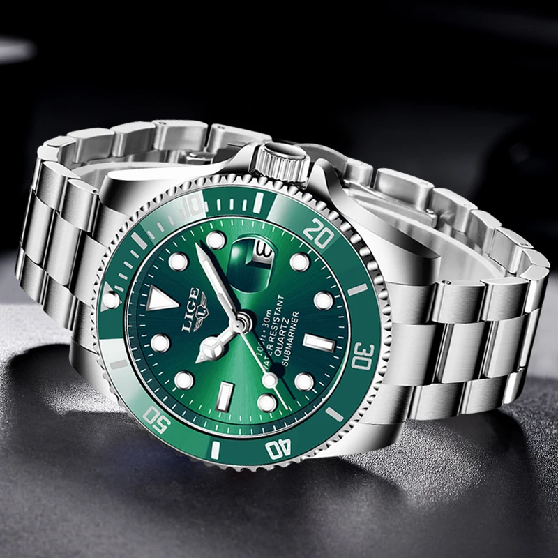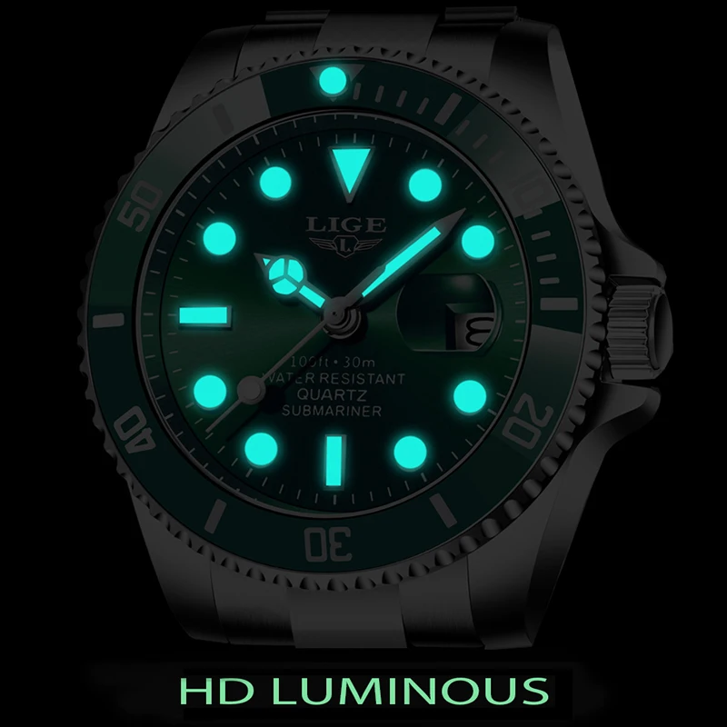 LIGE Top Brand Luxury Fashion Diver Watch Men 30ATM Waterproof Date Clock Sport Watches Mens Quartz Wristwatch Relogio Masculino