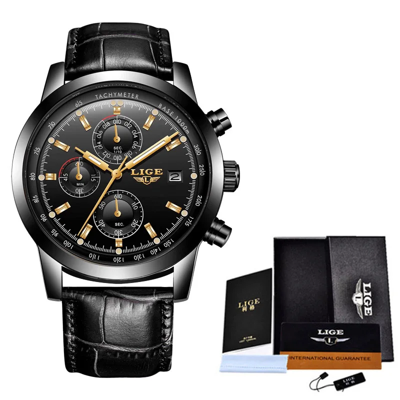 | Clearance Sale LIGE Fashion Watch For Man Top Brand Quartz Mens Watches Militray Waterproof Date Clock Sport Chronograph+Box |