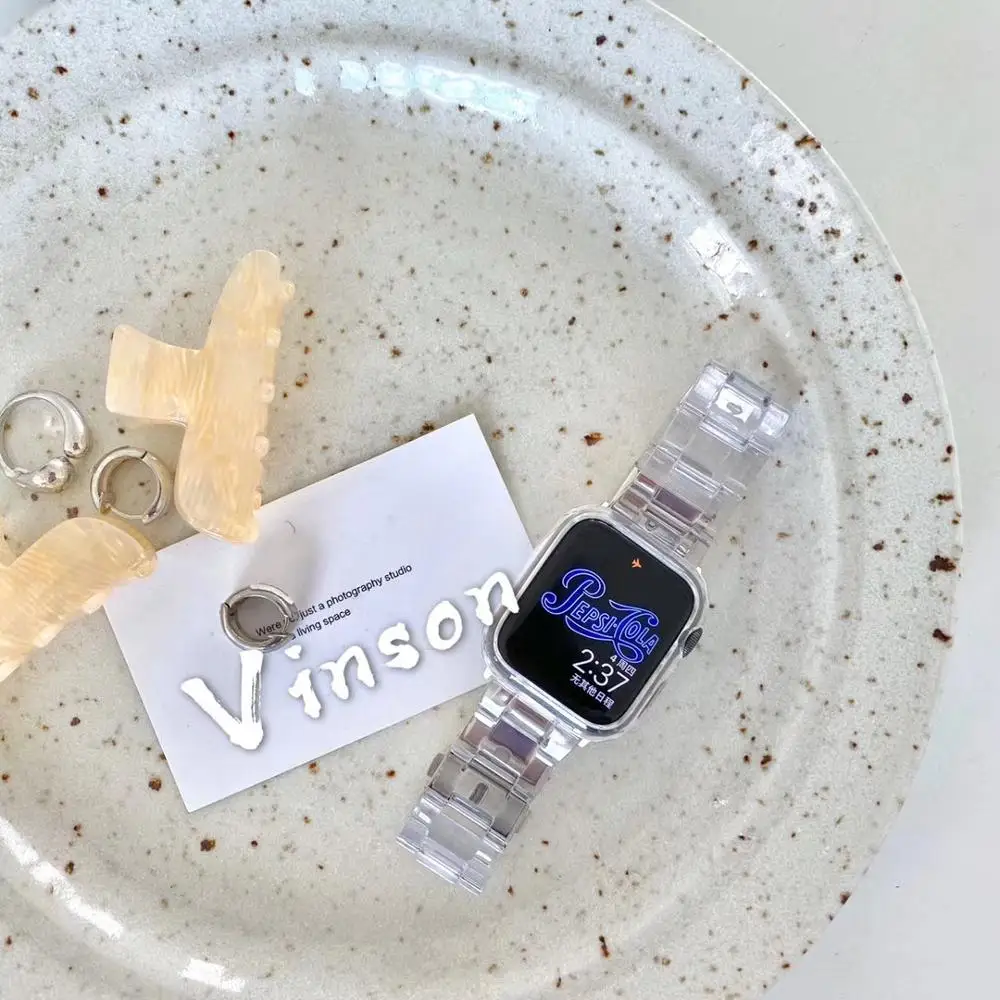 | Resin Watch strap for apple watch 6 5 4 band 42mm 38mm correa transparent steel for iwatch 6 series 5 4 3/2 watchband 44mm 40mm |