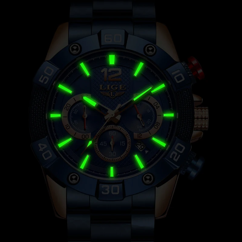 LIGE Men Watches Top Brand Luxury Stainless Steel Blue Waterproof Quartz Watch Men Fashion Chronograph Male Sport Military WatchBuy Now On Aliexpress