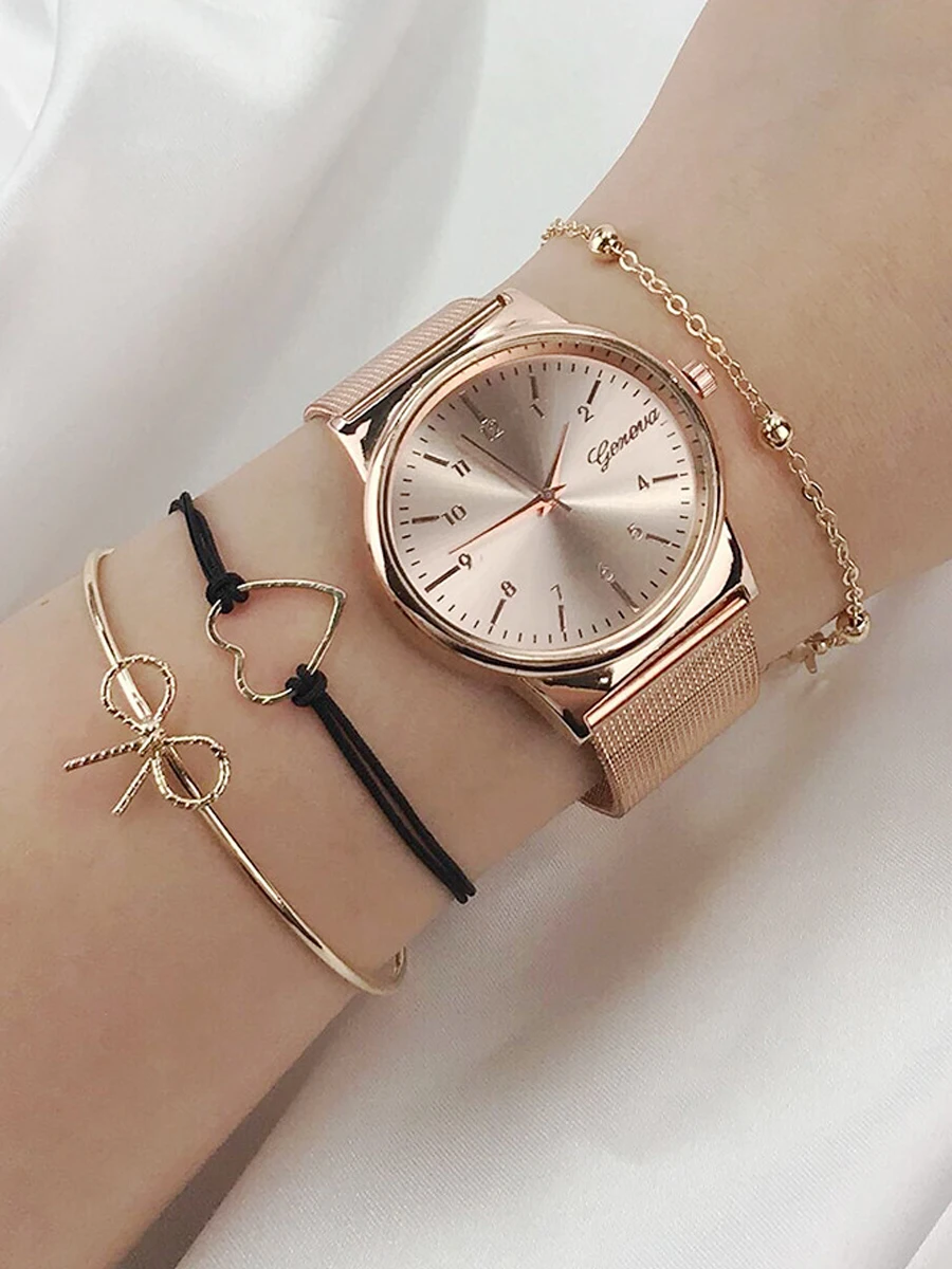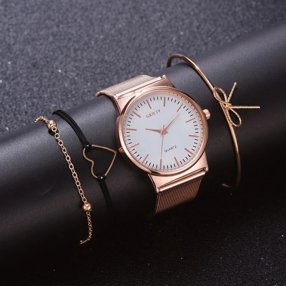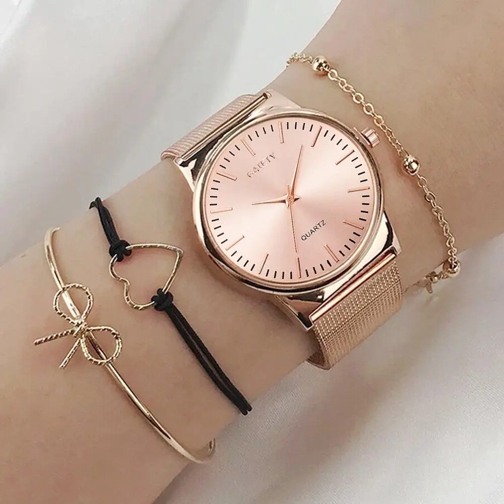 | 4PCS Women Watches Luxury Wrist watch relogio feminino Clock for Women Milanese Steel Lady Rose Gold Quartz Ladies Watch New |