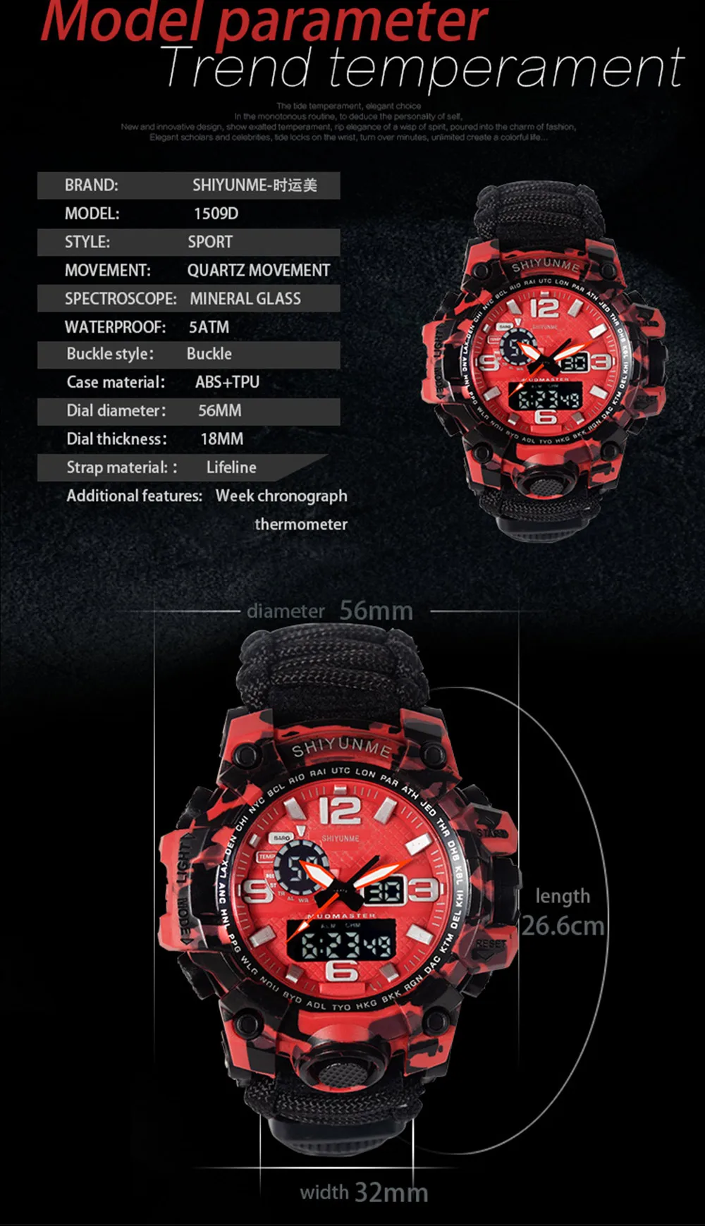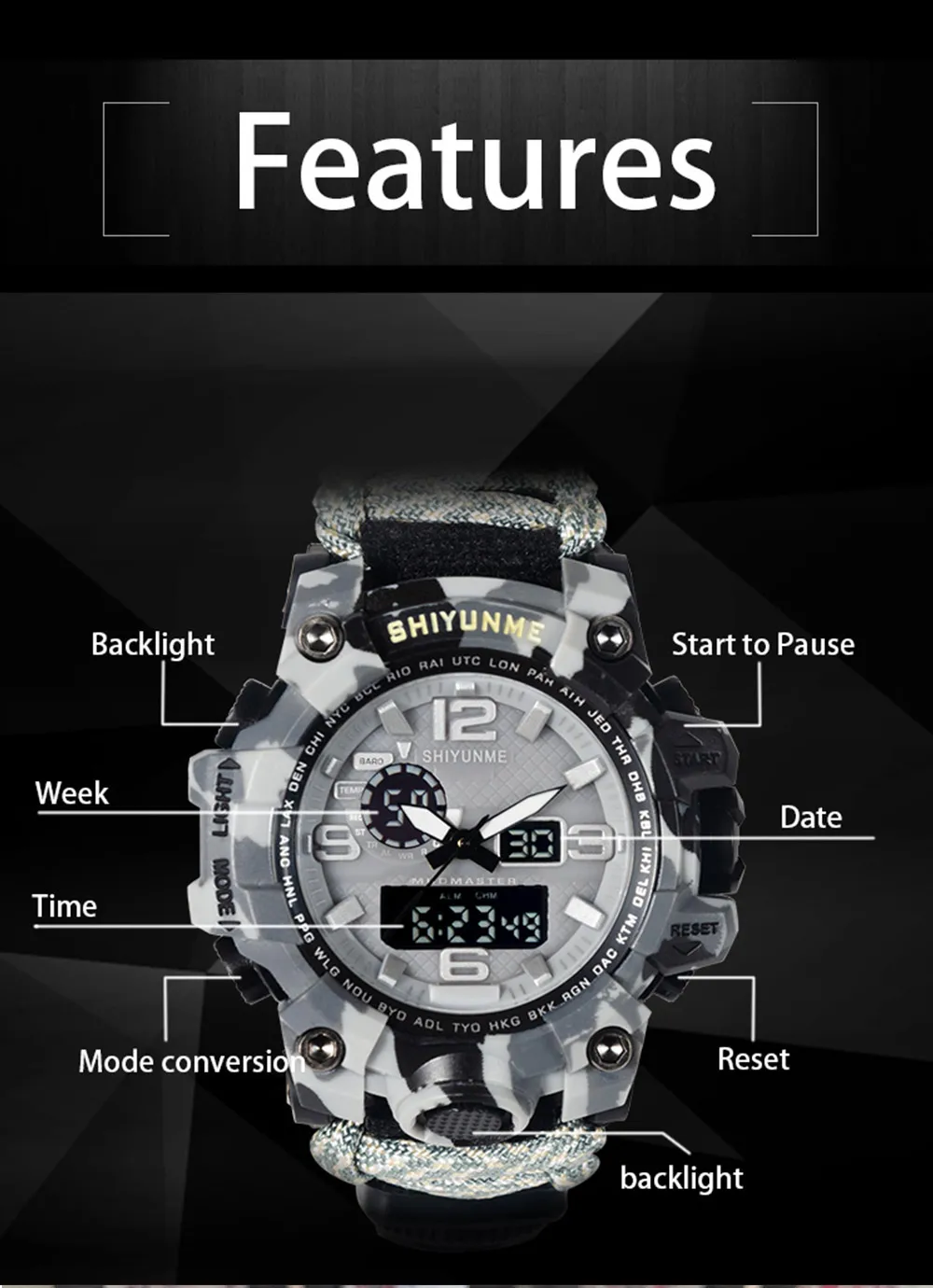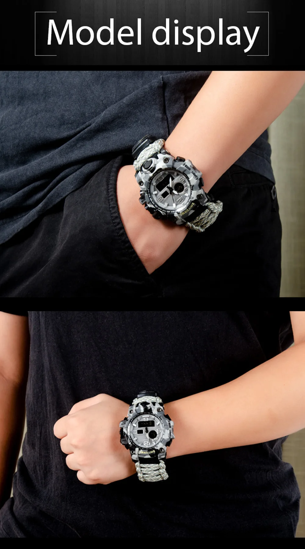 The best product you are looking for is "SHIYUNME Men Military Watch 50 Meters Waterproof Compass LED Digital Quartz Dual display Sports Watch Male Relogio Masculino". This product is available and ready to be purchased. Get attractive discounts every time you shop in our store (aliexpress.com). Aliexpress also provides a coupon of $ 3 for the first buyer to shop there. don't forget to bookmark our store page so you can go shopping again anytime..