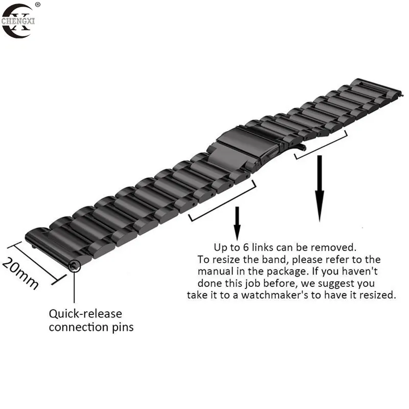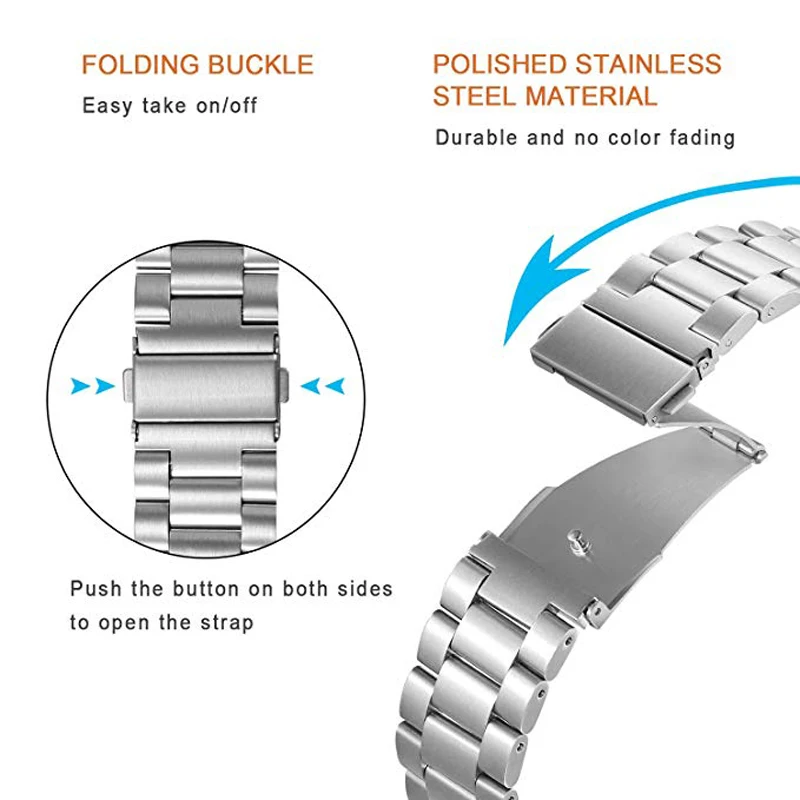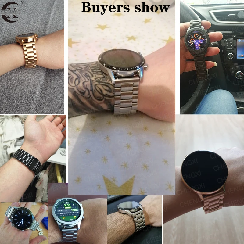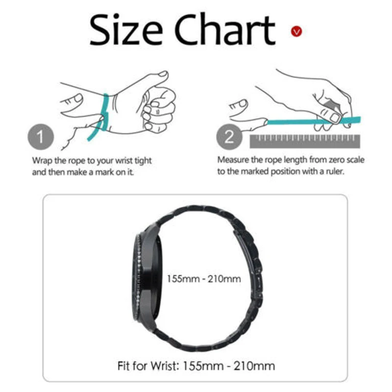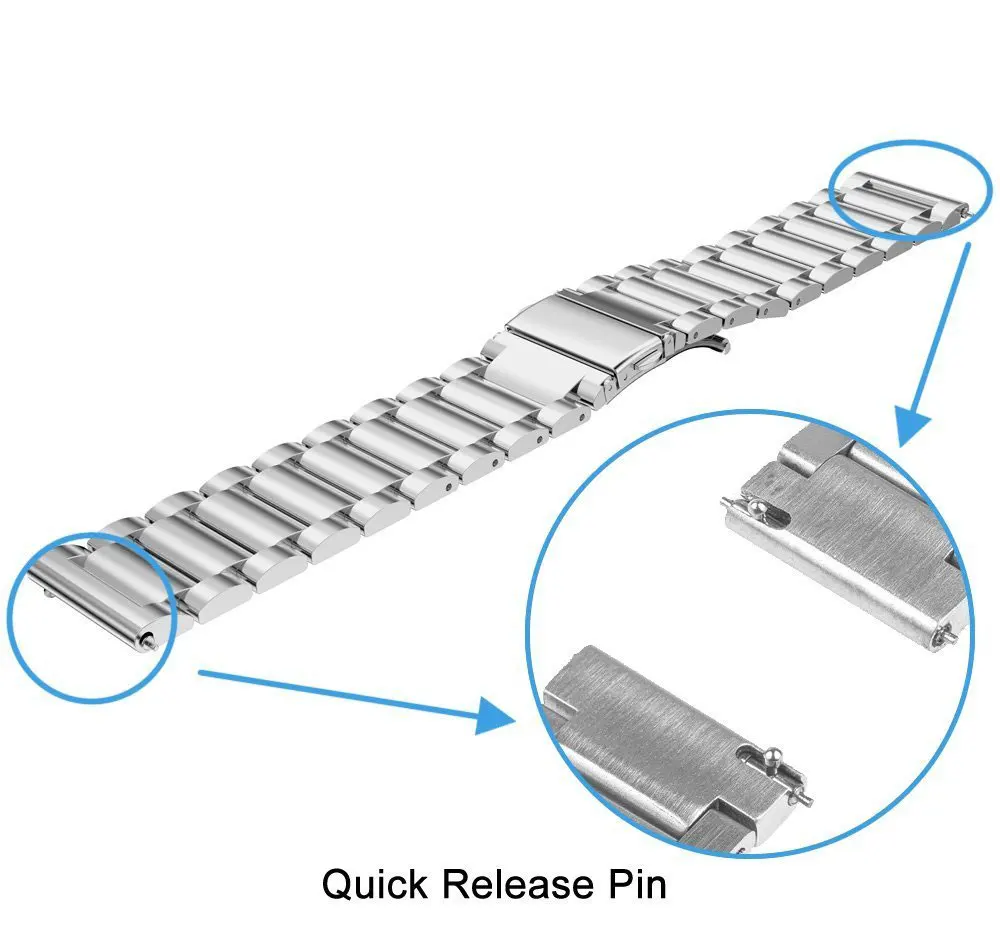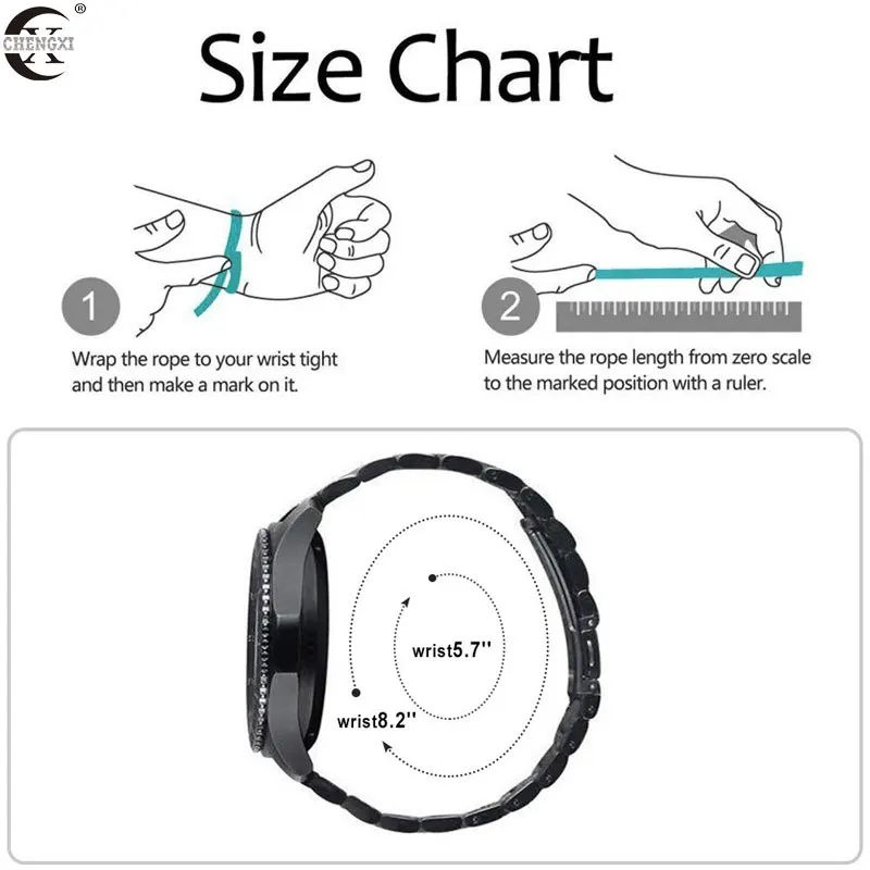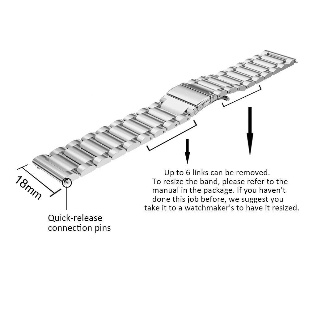 Q: Can this metal band be used for other brand smart watches as long as it is 22mm? A: Yes, our bands compatible with Samsung Gear S3 Classic/Frontier, Other 22MM Watch.?Q: Is this metal black version of this band more of a matte finish or a shiny finish?A: Our bands have a brushed finish, not as shiny or matte finish.Q: My wrist is 8.9", will this fit?A: No, it is for Gear S3 Classic/Frontier, suited for 4.92"-8.50" wrist. But you can send us information. If there are extra links, I will add them for you.Q: Can you buy replacement pins for the band?A: You do not need to buy replacement pins, our package include 2-3 Quick Release Pins. * This shop supports wholesale and direct shipping: 1. For wholesale customers: We will provide you with wholesale prices and free courier (such as DHL, EMS, Fedex, etc.), and the delivery time is about 3-7 days (except for remote areas) 2. For customers who ship directly: your customer is always your customer. We will handle other shipping details for you and will not disclose any of our information. (If you need special instructions, please contact us) *Transport: 1.AliExpress's standard shipping time is 15-45 days (30-90 days in some countries), so please wait patiently for the package. 2. If you need to buy multiple products, you can click "Add to Cart" and we will send all products in 1 package. 3. China Post Ordinary Small Packet Plus only provides the parcel tracking information before it leaves from China.If you want to track the parcel through the whole transit till delivery, please select shiping method by China Post Registered Air Mail, Aliexpress Standard Shipping or ePacket. *Dispute: 1. If there is any dispute, please contact us and we will reply your message within 24 hours. (Disputes complicate the issue. This results in longer resolution times. So if we can resolve the issue by ordering an email, please do not dispute it) 2. If you have not received your order for more than 60 days, you can directly raise an objection. *Guarantee: 1. We provide a 30-day warranty and the buyer is responsible for shipping costs. 2. If the product has any quality problems, it can be returned within the warranty period. (Please notify us as soon as possible). * Note: 1. Any item must be returned in its original condition to receive a refund. 2. Any used / welded items cannot be refunded or replaced. wish you health! happy life! Thank you very much for coming!